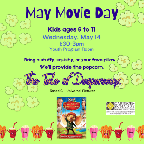 Wednesday, May 14, 1:30-3:00PM, we will present The Tale of Despereaux in the Youth Program Room.